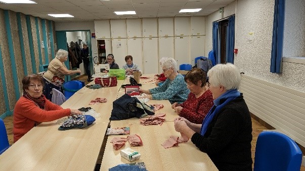 Une quinzaine de personnes se retrouvent pour réaliser des petits travaux, principalement de couture mais pas uniquement. Chacun apporte un projet personnel et bénéficie des conseils des autres.